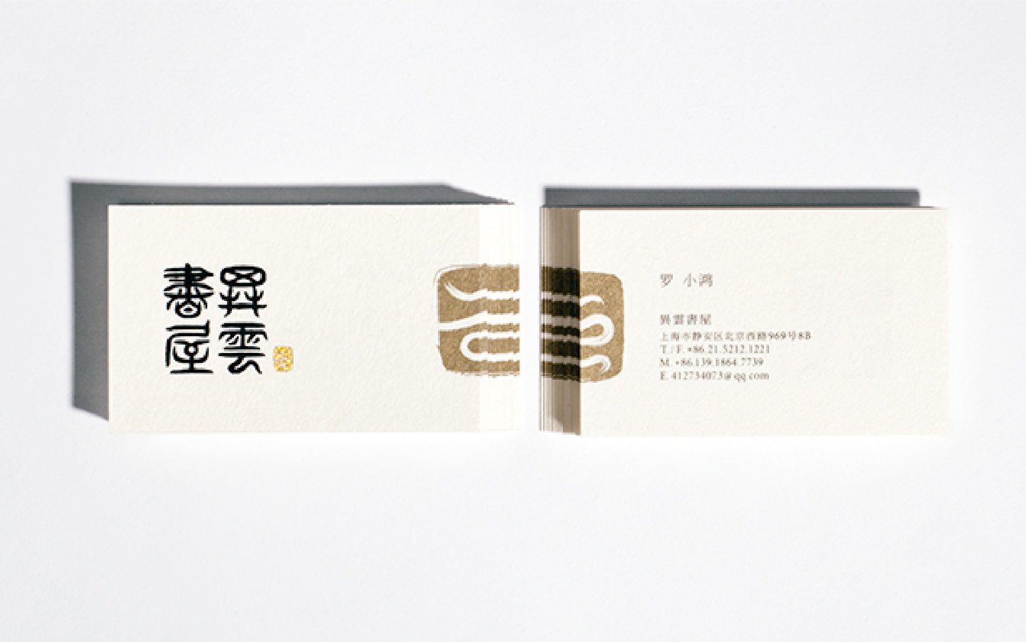 異雲書屋為古董收藏家的交流會所,品牌識別設計以香煙裊裊如異雲的意象,結合如古器物般沈穩的書法字體,展現雲收放自如、兼容並蓄的氣度,如同異雲書屋廣結藏家們於此鑒賞、把玩、互動交流,讓中國的文化之美得以分享。
