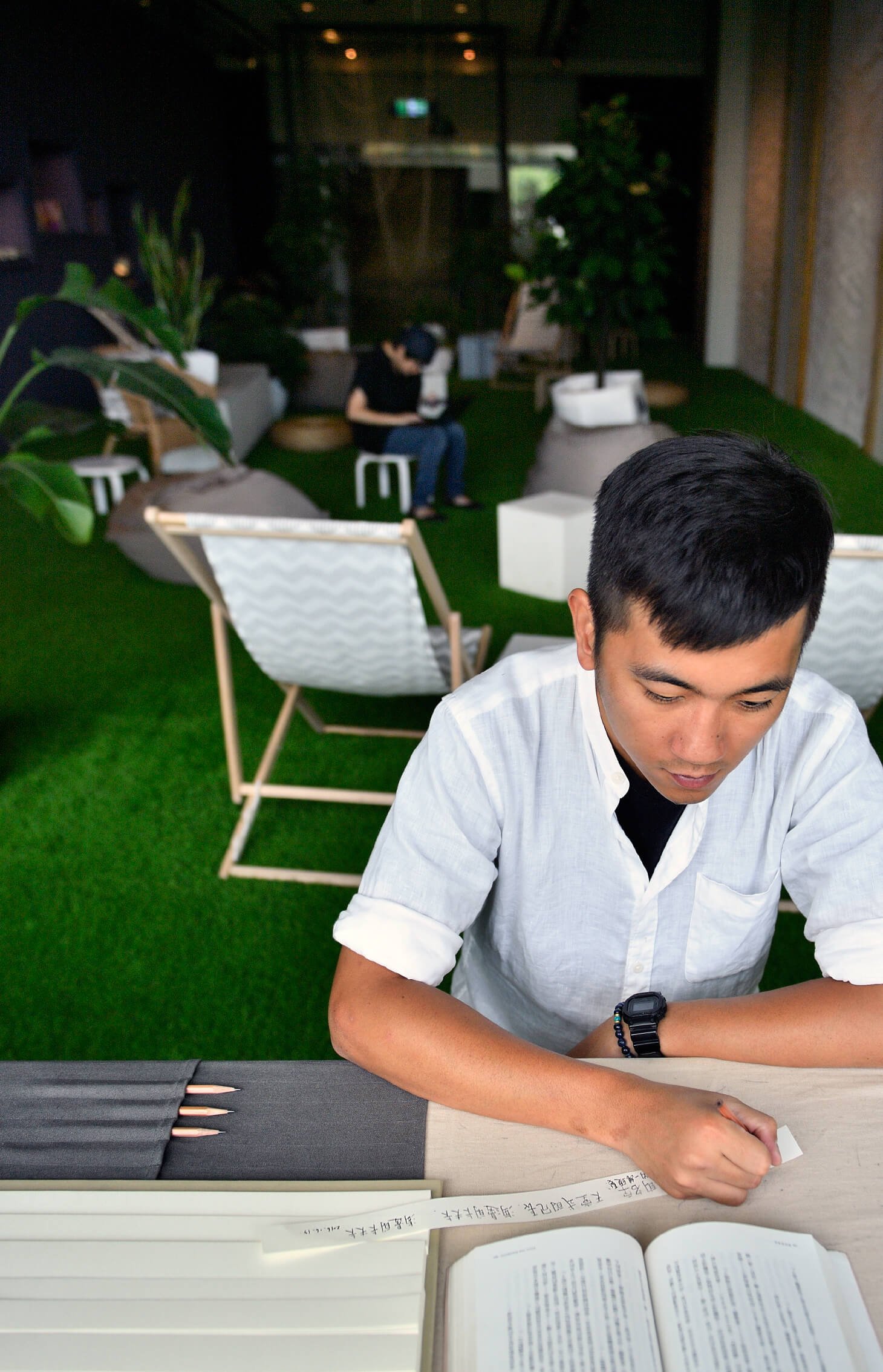 靈光編輯室為北美館企劃為期 6 個月的新型態閱讀活動,邀請大家放鬆閱讀,並書寫、分享引起共鳴的字句,經由文學閱讀與藝術創作激盪內心的想像,囍樹與研也設計合作,參與設計了和讀者互動的書寫與分享空間裝置,通過閱讀大家分享的字句中與書中的主人翁相遇、與作者的思想相遇,也與此時此地的每一道靈光相遇。