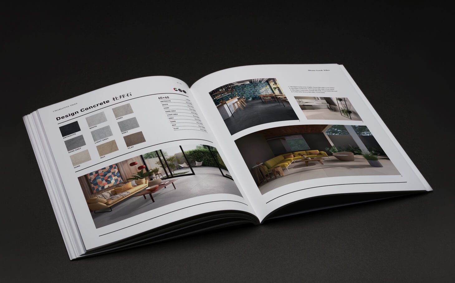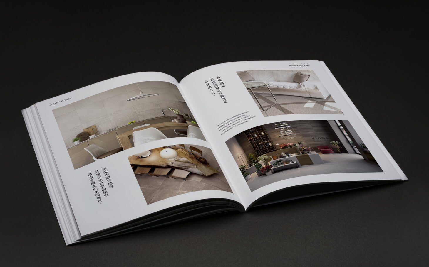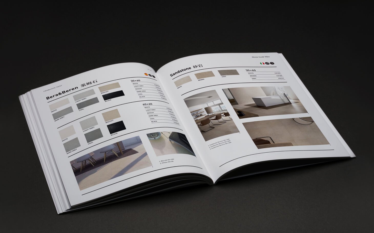 夏綠蒂型錄以主題式內容為核心,從生活場景與使用需求切入,重新詮釋磁磚的特點與應用情境。型錄不再只是產品集合,而是協助使用者理解材料與生活關係的內容載體。