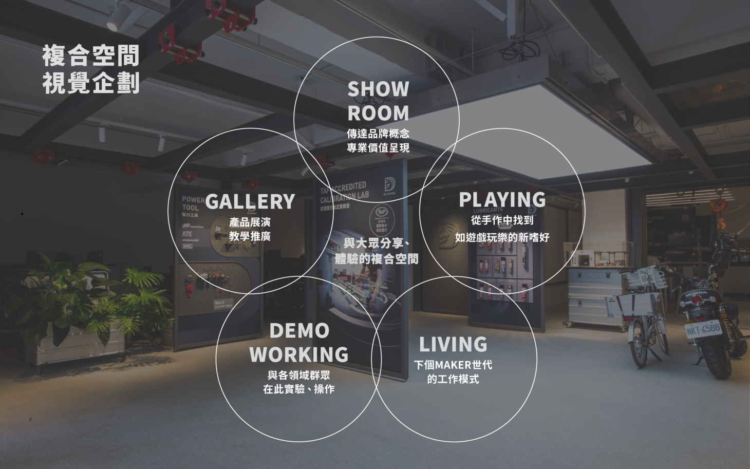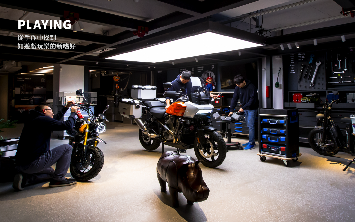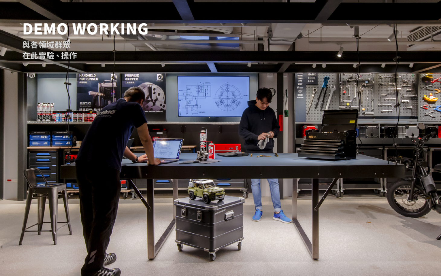 空間透過主題切換,可成為工具體驗中心、新品發表會、直播攝影棚、達人維修廠、重機保養場與活動展演空間,使品牌真正走入專業社群與生活場景。