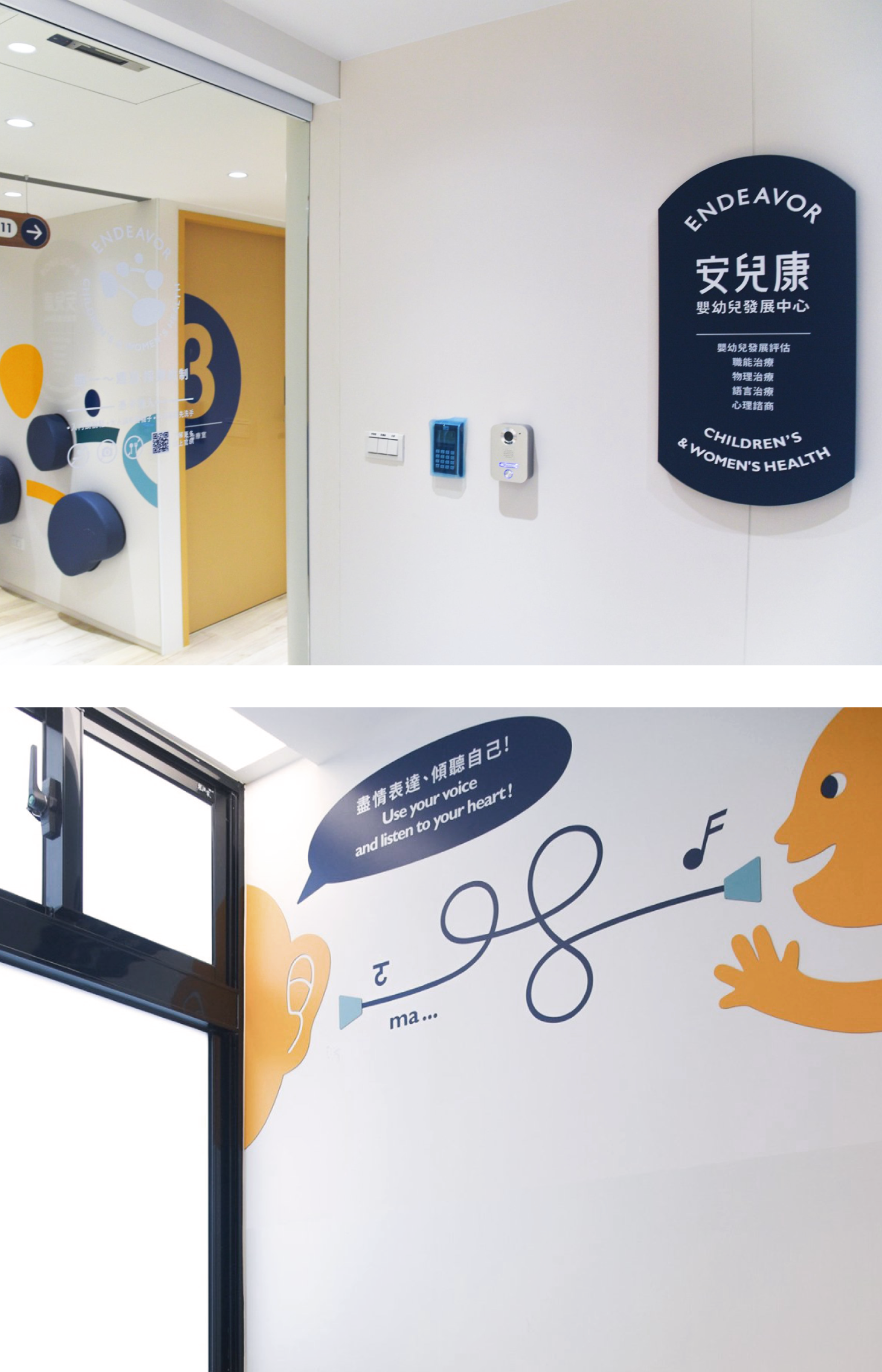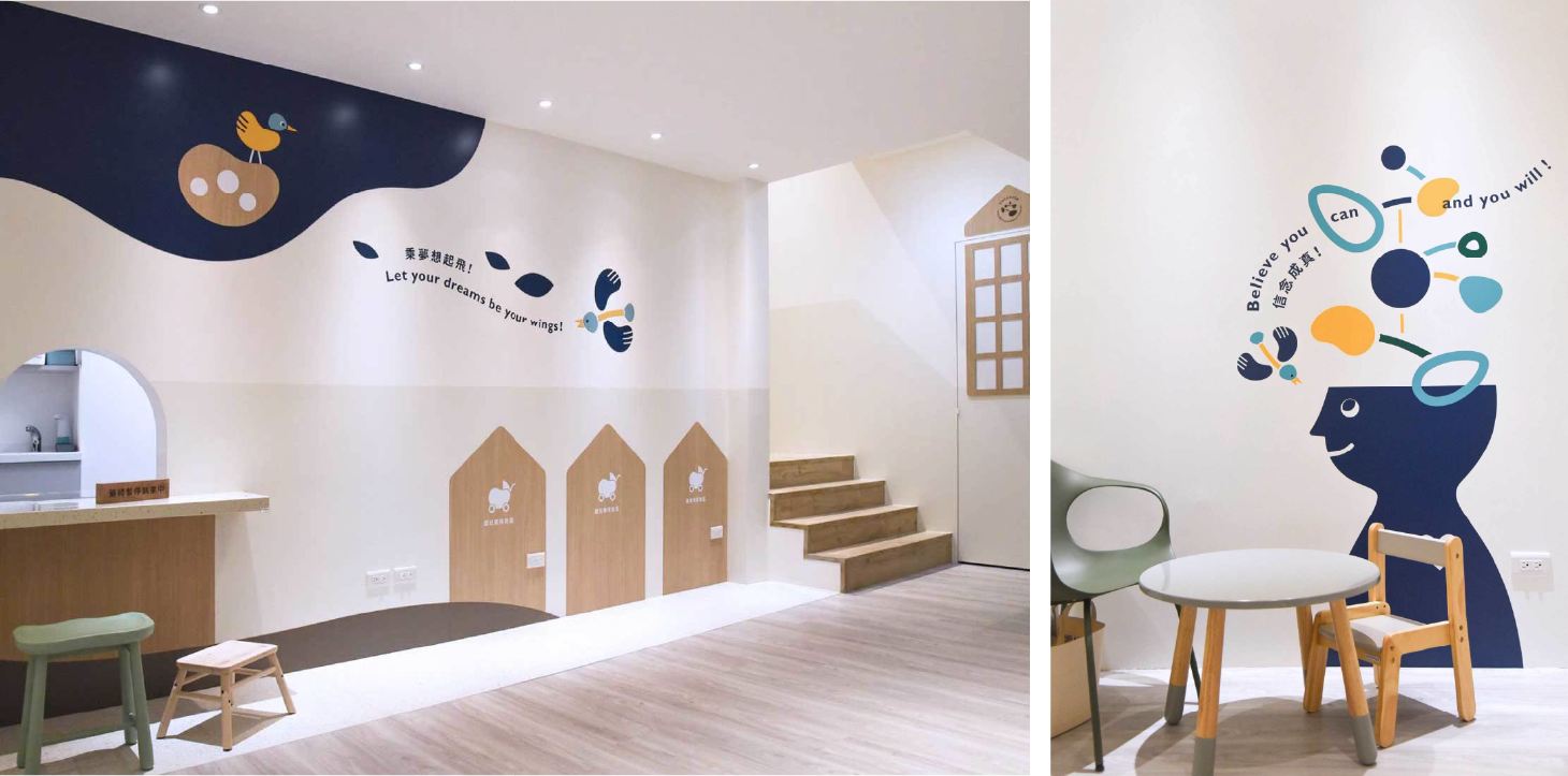 空間中加入正向語句、故事性視覺與可互動的細節,讓孩子在治療過程中以遊戲方式理解自己、面對情緒,並逐步建立自信。診療動線與環境設計皆以孩子與家長的需求為中心,使治療旅程不僅有效率,也始終保持溫度。