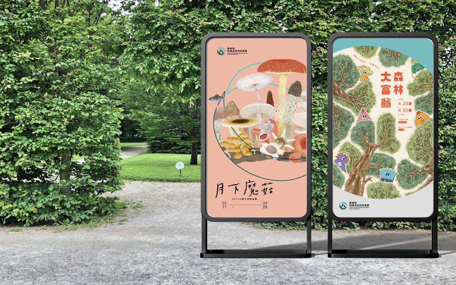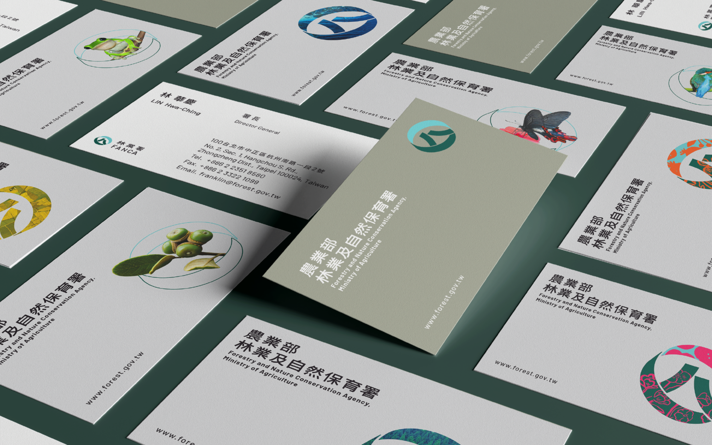 整體色彩、結構與圖形系統圍繞「生態臺灣 永續林業」展開。視覺語言兼具理性制度感與自然柔和度,使機關形象在專業、公信與親和之間取得平衡。