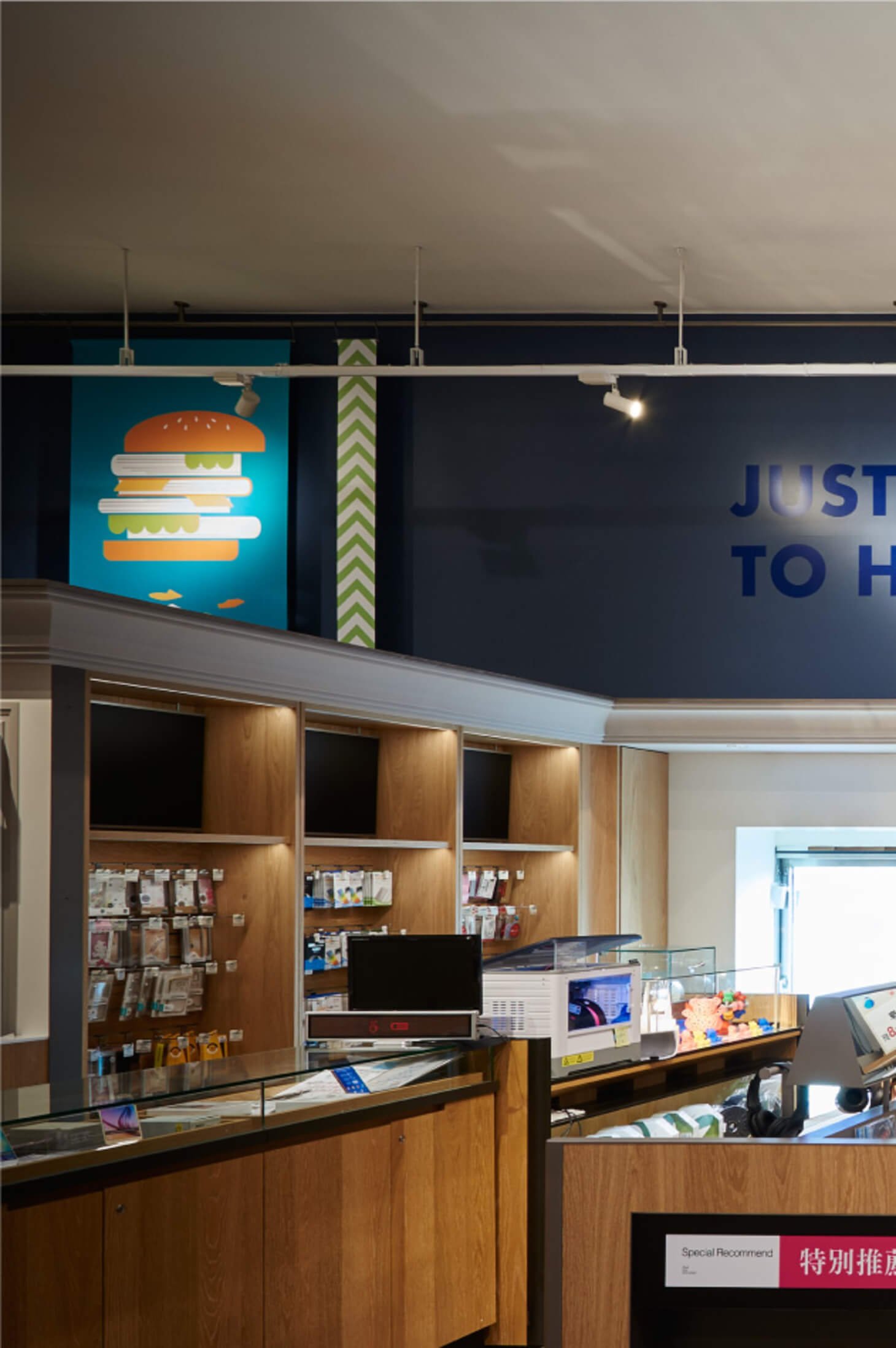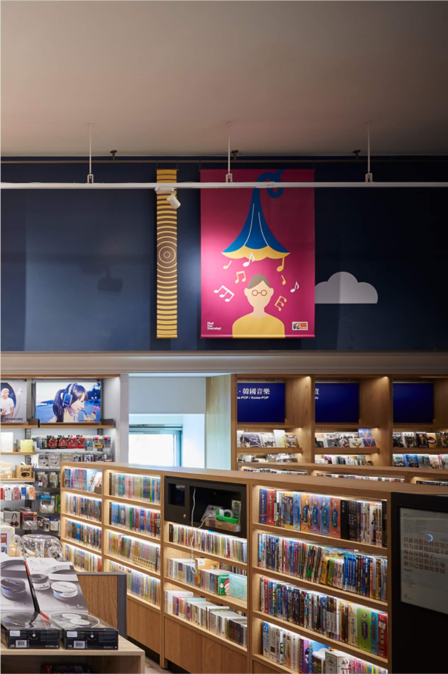 空間裝置、標示、牆面插畫與陳列視覺一同構成完整體驗,使消費者在瀏覽、探索或互動時,都能感受到法雅客的文化品味與青春活力,形成獨特且記憶點十足的門市形象。