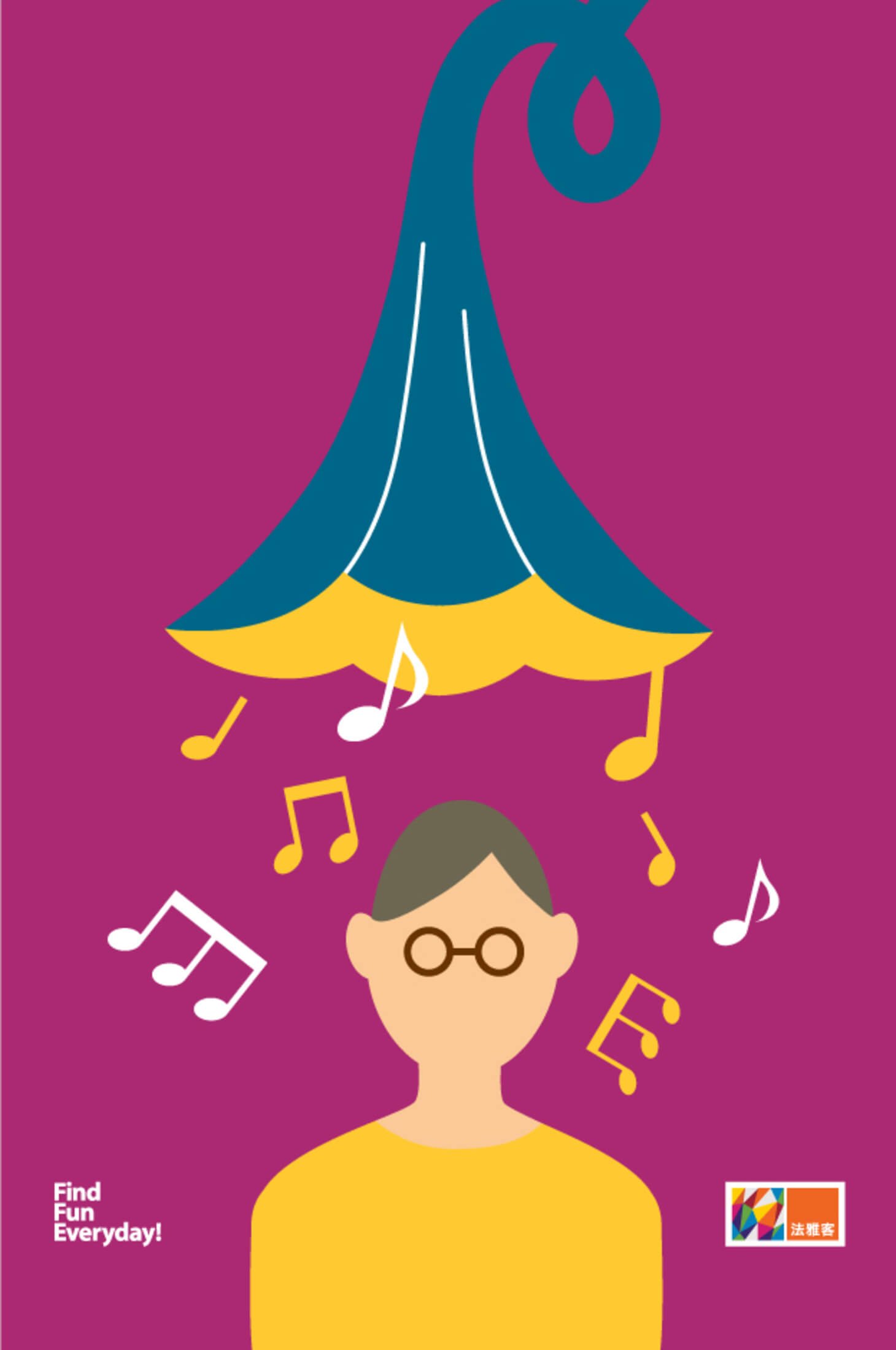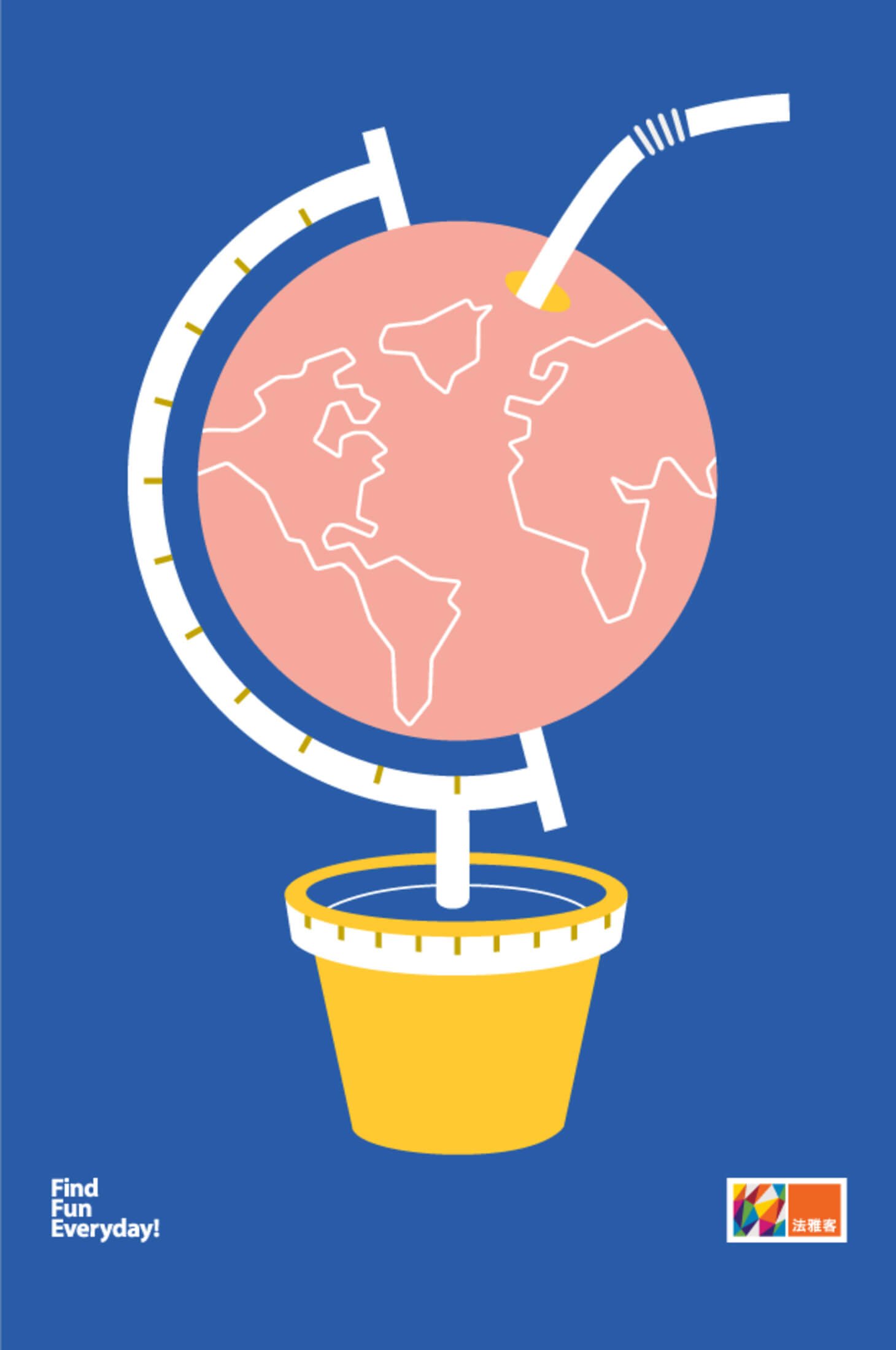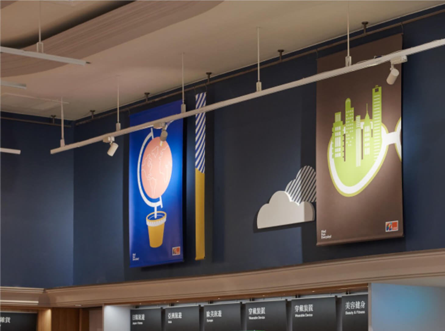 「FIND FUN EVERYDAY!」被轉化為年輕、有趣的視覺語句,並融合色塊、線條、插畫等元素,使品牌核心精神在空間中得以具象化,呈現輕鬆自在的生活節奏。
