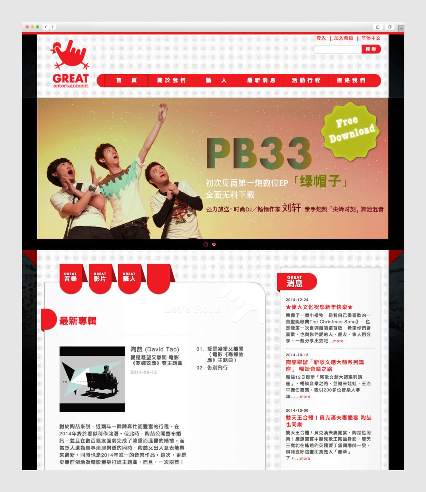 從品牌識別到網站形象,整體系統皆圍繞音樂本質而建立。Great Entertainment 希望透過更成熟的品牌語言與數位呈現,成為亞洲音樂文化的重要節點,串連創作者、觀眾與未來的市場可能。