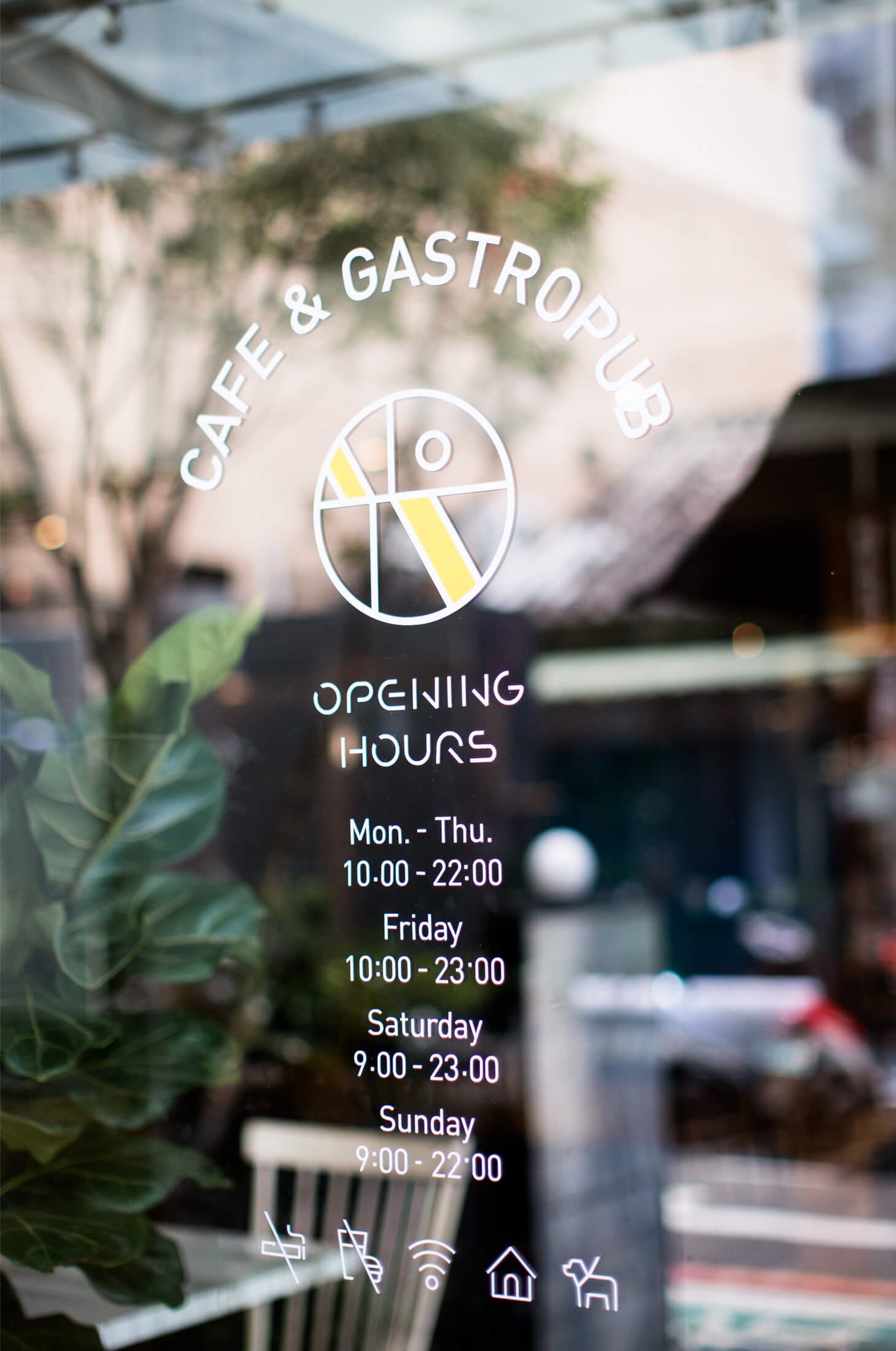 設計運用鮮明亮黃色作為核心色彩,搭配斜角度色塊、分段虛實線條,轉化為光線折射與影子分割的視覺意象。這套語言既強烈又具延展性,成為品牌在平面、包裝、空間中的統一視覺基底。