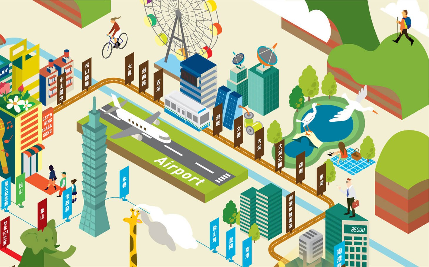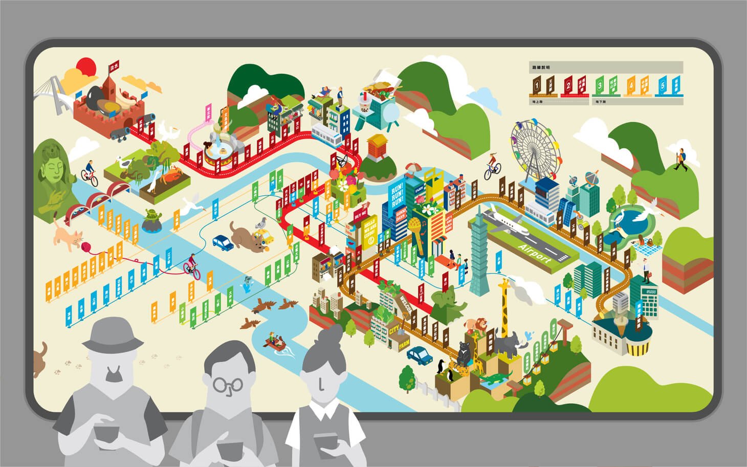 捷運系統穿梭地上與地底,帶領人們經過城市的可見與不可見。每一個站點是「點」、軌道路線是「線」、沿途街景與城市截面則是「面」,共同構成一趟立體的空間體驗。囍樹以此為起點,重新定義捷運地圖的觀看方式。