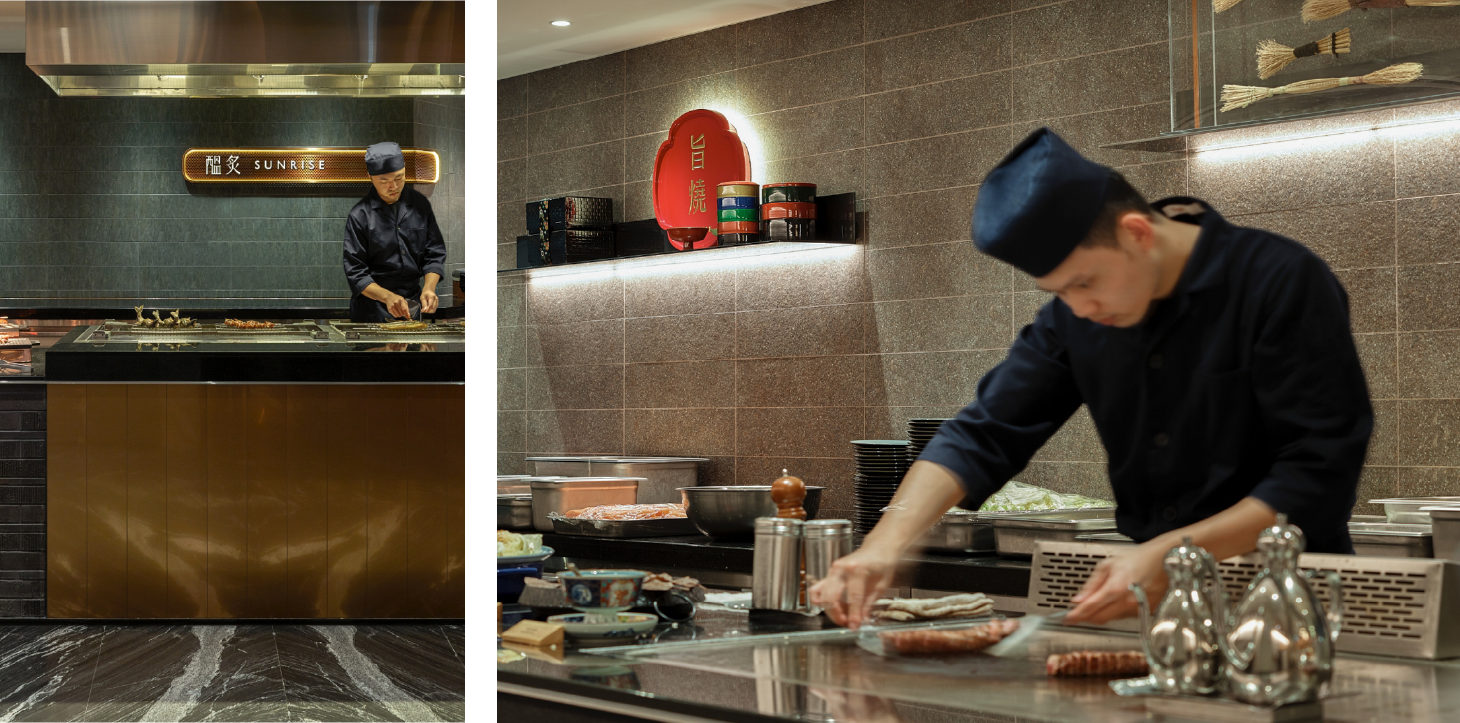 旭集為饗賓餐旅集團於饗饗後推出的日本料理新品牌,我們以「日之九味」作為品牌發展的主軸。從「旭」字的「日」與「九」延伸,象徵九種日本料理風味的匯聚,使品牌在命名、故事與視覺上具備明確脈絡,也奠定餐廳完整的體驗基調。