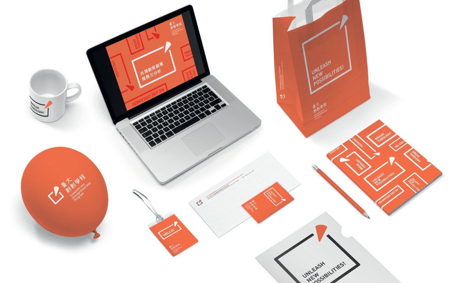 囍樹以「突破邊界」與「探照未來」作為視覺主象徵,將品牌識別轉化為具方向性與張力的圖形界面。識別語彙象徵創業者勇於嘗試、勇於失敗,也象徵創創學程所提供的開放與包容的學習環境。