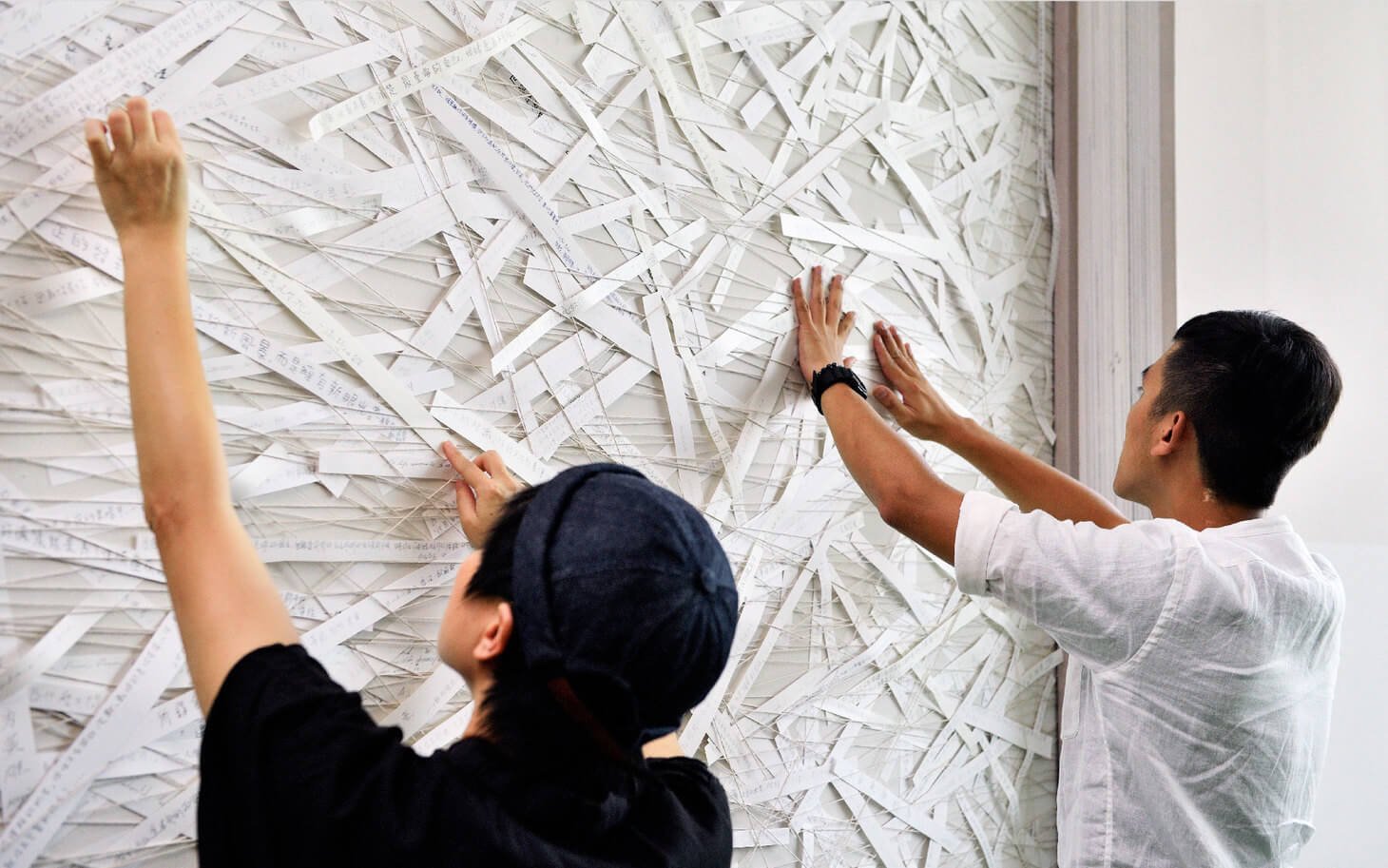 囍樹與研也設計共同規劃具有「書寫、展示、交換」功能的空間裝置,讓讀者能自由書寫、張貼文字,並在彼此的筆記中尋找共鳴。這些被分享的字句成為空間的靈光,隨著時間累積、流動,形成共享的閱讀景觀。